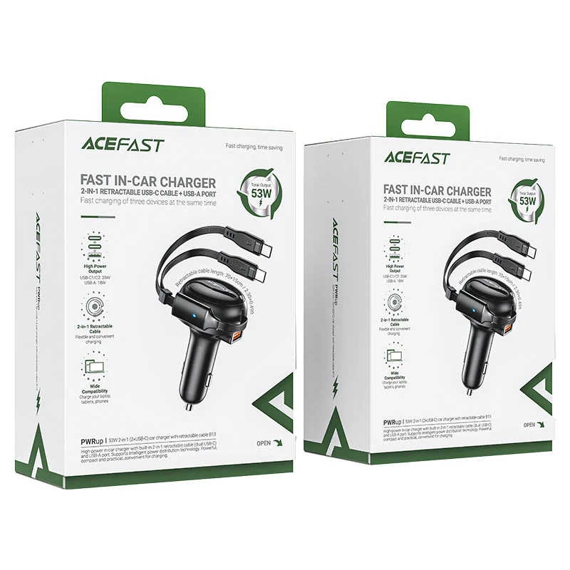شارژر فندکی ایس فست ACEFAST B13 53W Fast Charger توان 53 وات همراه با کابل متصل
