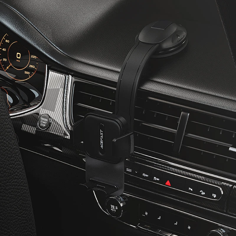 اتصال هولدر داشبوردی ACEFAST D26 به داشبورد ماشین بوده و نصب راحتی دارد و پس از نصب، مکش بسیار قوی آن خیال شما را از ایمن بودن گوشیتان راحت میکند. هولدر از طریق یک مفصل به بازوی آن متصل میشود. بازوی هولدر داشبوردی ACEFAST D26 روی پایه آن 360 درجه میچرخد و به شما امکان میدهد که بتوانید به راحتی گوشی خود را در هر زاویه و هر مکان که میخواهید استفاده کنید. این امکان کمک میکند که گوشی جلوی دید شما را سد نکند و همچنین اینکه گوشی به خوبی در اختیار شما قرار بگیرد. علاوه بر این از محل مفصل نیز هولدر گوشی ایس فست D26 امکان چرخش گوشی را در اختیار شما قرار میدهد.