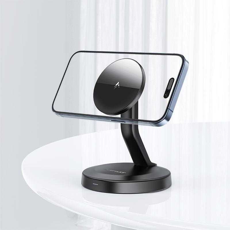 هولدر مگ سیف ACEFAST E26 علاوه بر شارژ سریع و بیسیم، به عنوان یک پایه نگهدارنده گوشی نیز عمل میکند. شما میتوانید گوشی را در حالت عمودی یا افقی قرار دهید و در حین شارژ، به راحتی فیلم تماشا کنید یا تماس ویدیویی برقرار کنید.