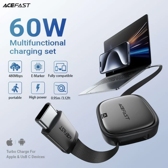 پک کابل چند منظوره ایس فست ACEFAST J3 Acewire Pro توان 60 وات همراه با کابل جمعشونده