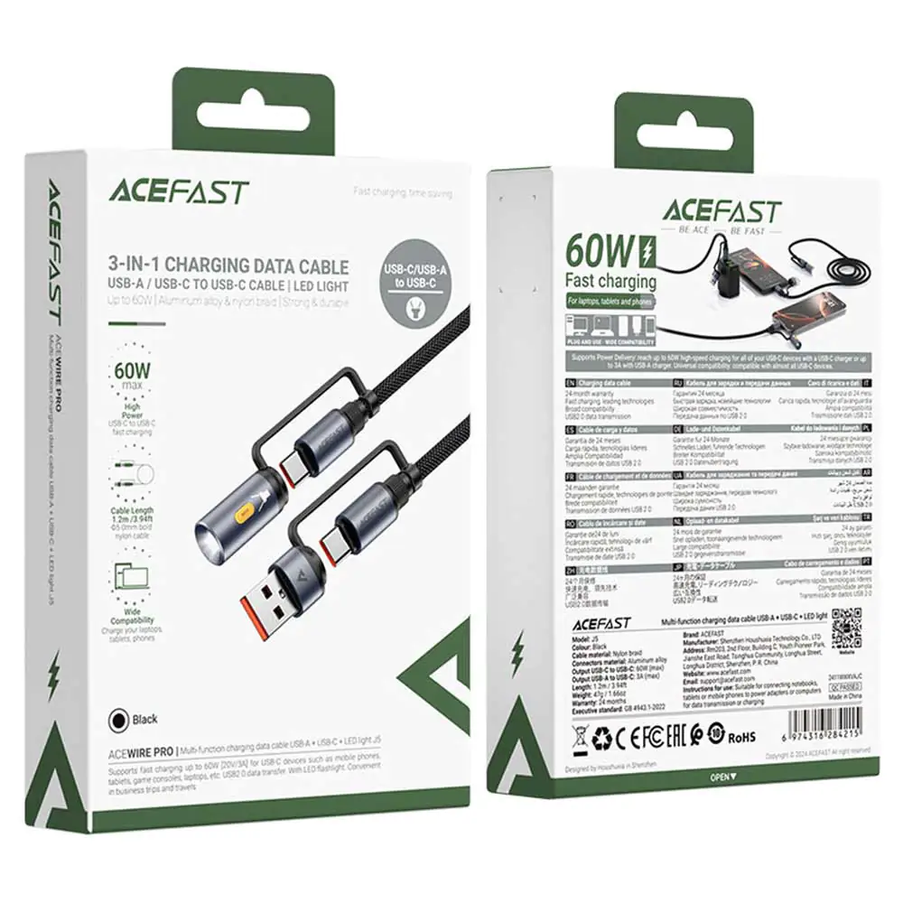 کابل Type-C به Type-C چندکاره ایس فست ACEFAST J5 Acewire Pro طول 1.2 متر توان 60 وات