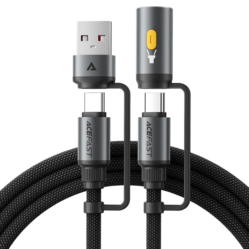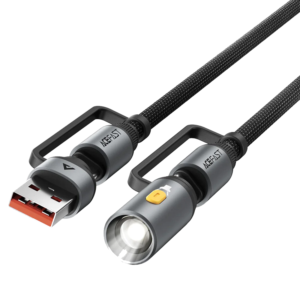 کابل تایپ سی ACEFAST J5 با طراحی 4 در 1 خود به شما امکان اتصال به انواع دستگاهها با درگاه تایپ سی را میدهد و دستگاهتان را بهسرعت شارژ میکند. این کابل دو سری دیگر دارد که یکی از آنها تبدیل تایپ سی به USB است. سری دیگر نیز به عنوان چراغقوه استفاده میشود و در شرایط تاریک میتوانید بهراحتی از کابل استفاده کرده یا محیط اطراف خود را روشن کنید. این ویژگیها، کابل چندکاره ACEFAST J5 را به ابزاری چندکاره و ضروری برای زندگی روزمره و سفرهای شما تبدیل میکند.