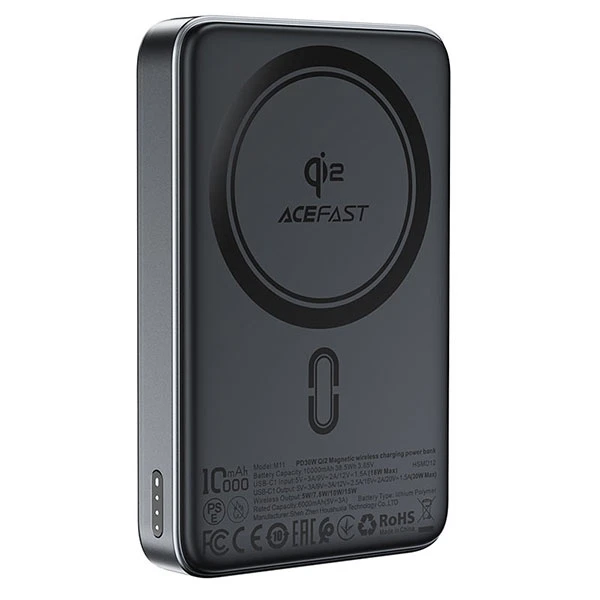 ACEFAST M11 از فناوریهای PD3.0، QC4+، AFC، SCP و FCP پشتیبانی میکند که باعث میشود دستگاههای مختلف را با حداکثر توان 30 وات از طریق پورت USB-C شارژ کند. این قابلیت بهویژه برای گوشیهایی که از شارژ سریع پشتیبانی میکنند، مفید است و میتواند در مدت کوتاهی، درصد زیادی از باتری را شارژ کند. همچنین، ورودی USB-C پاوربانک مگ سیف ACEFAST M11 نیز 18 وات است که امکان شارژ سریع خود پاوربانک را فراهم میکند.