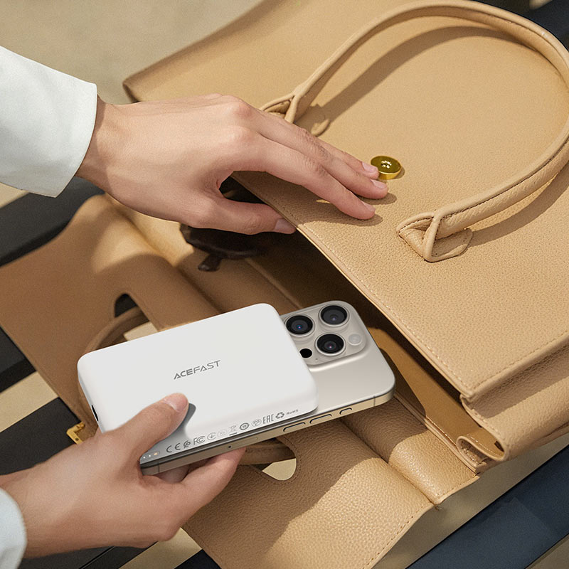 پاوربانک 10000 ایس فست ACEFAST M26 مجهز به فناوری شارژ بیسیم مغناطیسی است. این ویژگی باعث میشود گوشی شما بهطور دقیق و محکم روی سطح پاوربانک قرار بگیرد. نیروی مغناطیسی قدرتمند آن مانع از حرکت یا افتادن گوشی میشود و شارژ بهصورت پایدار ادامه مییابد. این قابلیت بهویژه برای کاربرانی که در حال حرکت یا رانندگی هستند بسیار کاربردی است، زیرا بدون نیاز به تنظیم دستی، گوشی بهطور خودکار در جای درست قرار میگیرد و شروع به شارژ میکند.