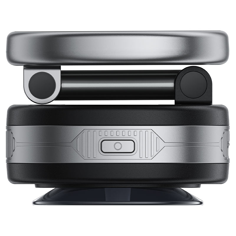 یکی از مهمترین نقاط قوت هولدر مگنتی ایس فست E30، مکنده برقی آن است که بهصورت خودکار عمل مکش را انجام میدهد. کافیست هولدر را روی سطح صاف نصب کنید تا سیستم پمپاژ برقی، فشار لازم برای چسبندگی مطمئن را ایجاد کند. این مکنده با بهرهگیری از باتری داخلی 110 میلیآمپرساعتی و کنترل خودکار فشار، تضمین میکند که هولدر بدون لغزش روی داشبورد، شیشه یا سطوح صیقلی دیگر محکم باقی بماند. دکمهی آزادسازی وکیوم نیز امکان جداسازی راحت و سریع را فراهم کرده است.